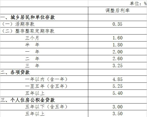 金融机构人民币存贷款基准利率调整表